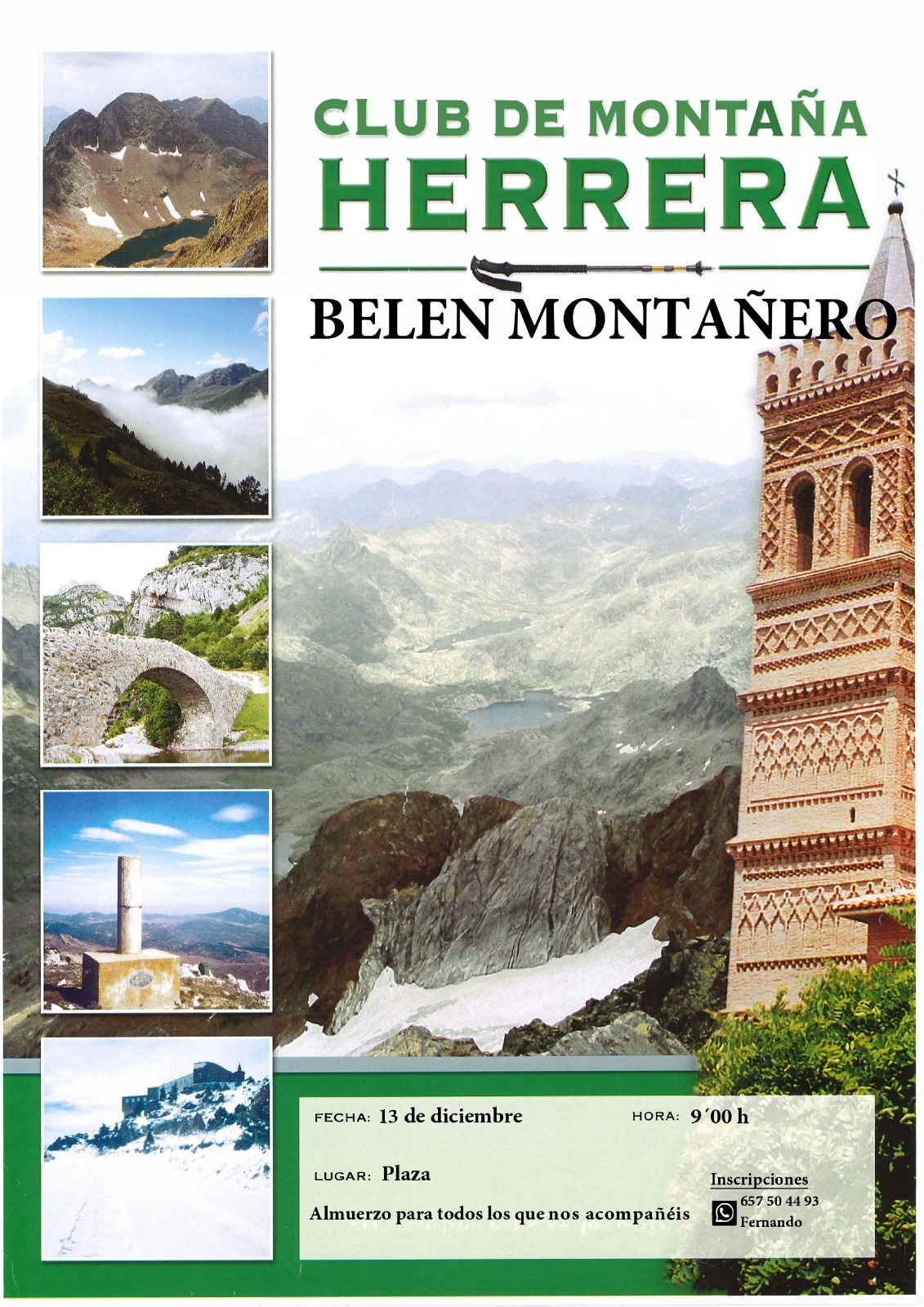 Belén Montañero, del Club de Montaña Herrera. Salida desde La Plaza de Herrera de los Navarros, requiere inscripción. Almuerzo para los participantes.