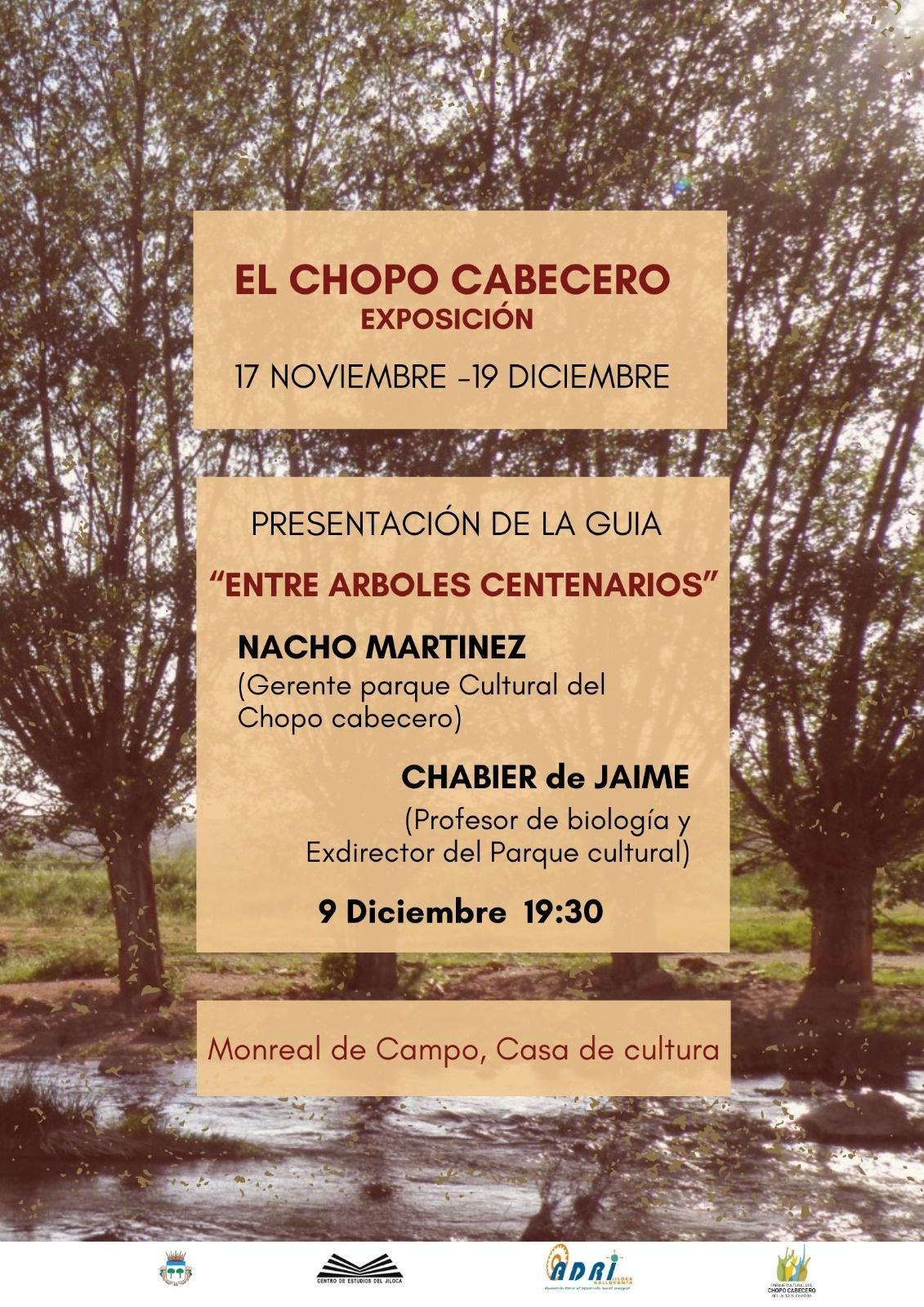 Presentación de la guía "Entre árboles centenarios", de la mano de Nacho Martínez, gerente del parque cultural del Chopo Cabecero, y Chabier de Jaime, profesor de biología y exdirector del parque.